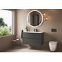Møblets korpus og front er udført i farven lava med en silkematte overflade. Den specielle anti-fingerprint-belægning sikrer, at overfladen forbliver pæn og ren med minimal indsats. Materialerne er desuden fugtbestandige, hvilket garanterer lang holdbarhed i badeværelsesmiljøet.