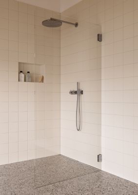 Showerama Art svingdøren kan anvendes som en enkeltstående dør eller i kombination med en fast brusevæg eller en anden svingdør for at skabe et større bruseområde.