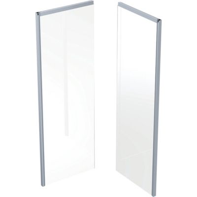 Elementet kombinerer en elegant sølvfarvet ramme med klare glaspaneler, hvilket skaber et stilrent og moderne udtryk. Det transparente glas giver en let og åben fornemmelse i badeværelset, samtidig med at det effektivt holder vandet inde i bruseområdet.