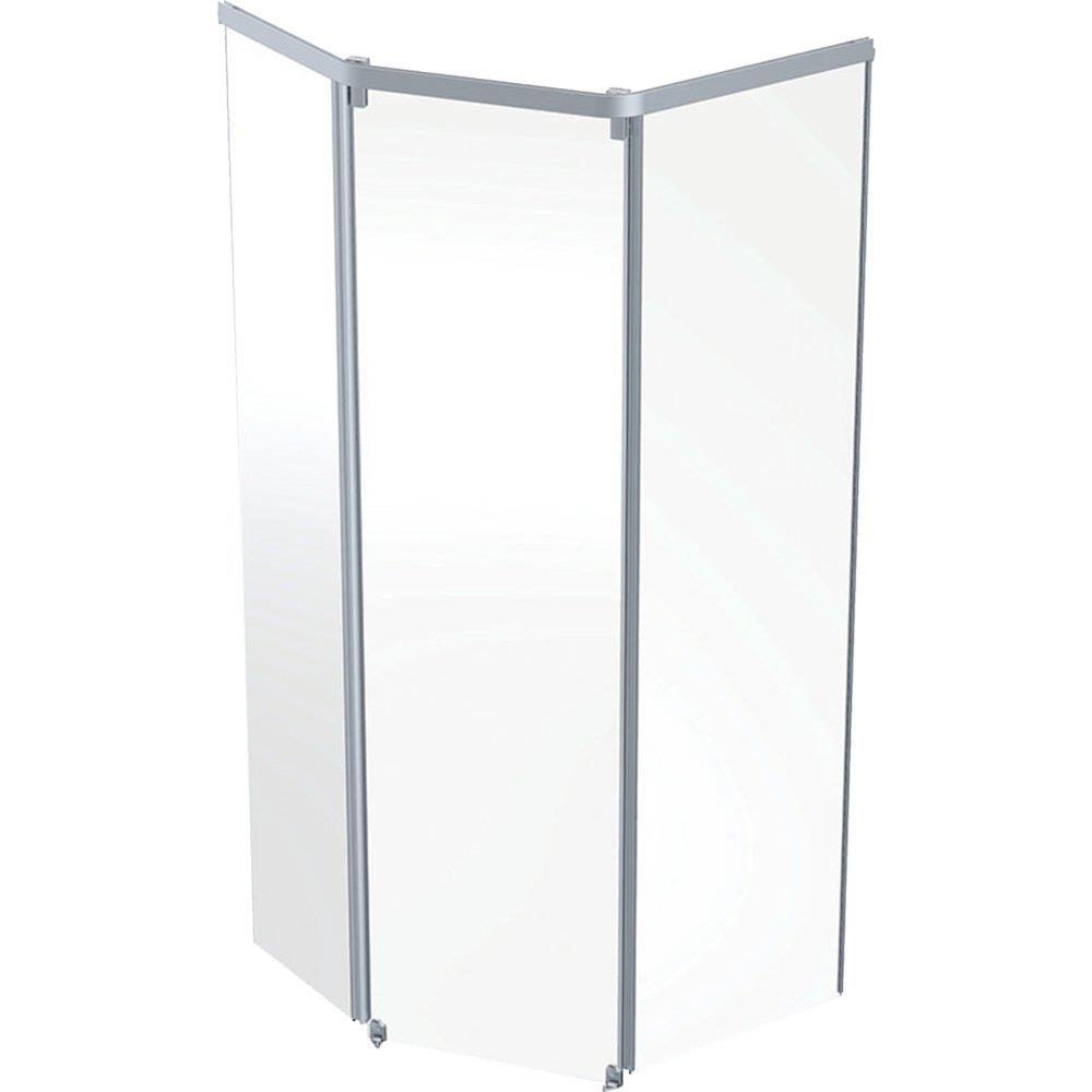 Showerama femkantet frontelement: B=800 mm, L=900 mm. Sølvfarvet med transparent glas.