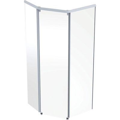 Showerama femkantet frontelement i målene 900x900mm. Med hvid alu-profil og klart glas. Modulært design.