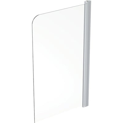 Space badekarsafskærmning i klart glas med mat aluminiumsprofil. 80 cm bred og 140 cm høj. Halvt indrammet med svingdørsåbning.