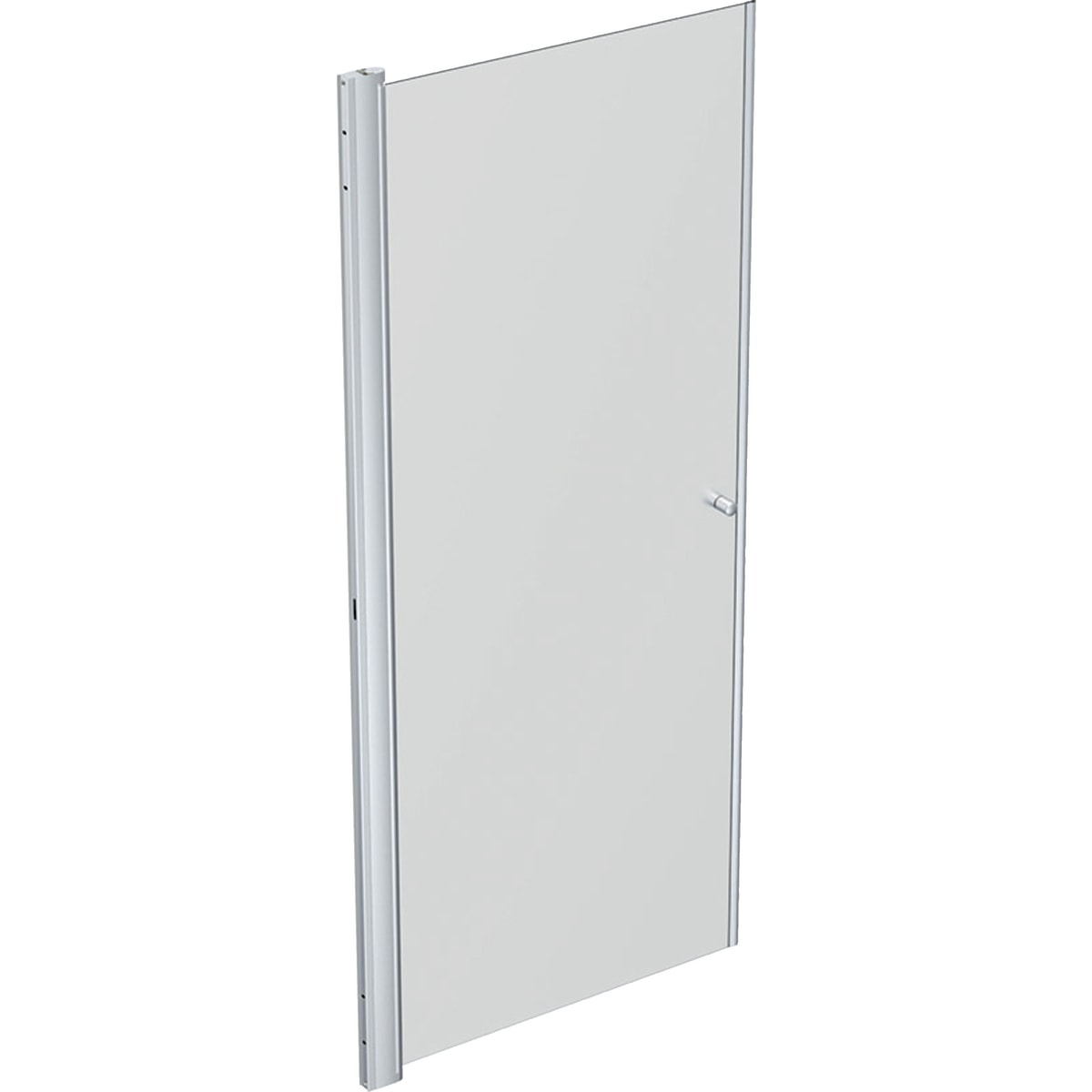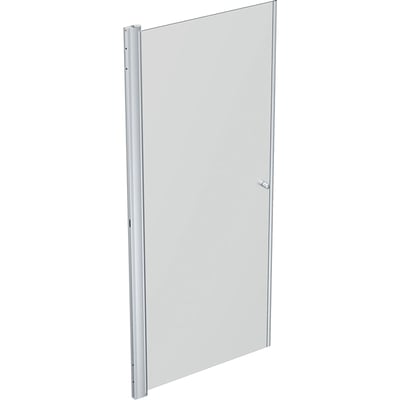 Mat aluminiumsprofil med frostet hærdet sikkerhedsglas og knopgreb. Højde: 200 cm. Bemærk: Pris pr. dør. Bestil 2 døre til en hjørneløsning.
