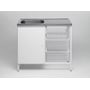 Dette vaskebord fra Contura steel er designet til praktiske formål og tilbyder en robust løsning til ethvert værksted eller bryggers. Bordpladen er fremstillet i mønstervalset, rustfrit stål, hvilket sikrer holdbarhed og nem rengøring. Den integrerede vaskekumme er generøs i størrelsen, og det aflåselige skab giver sikker opbevaring af kemikalier eller andre fornødenheder.
