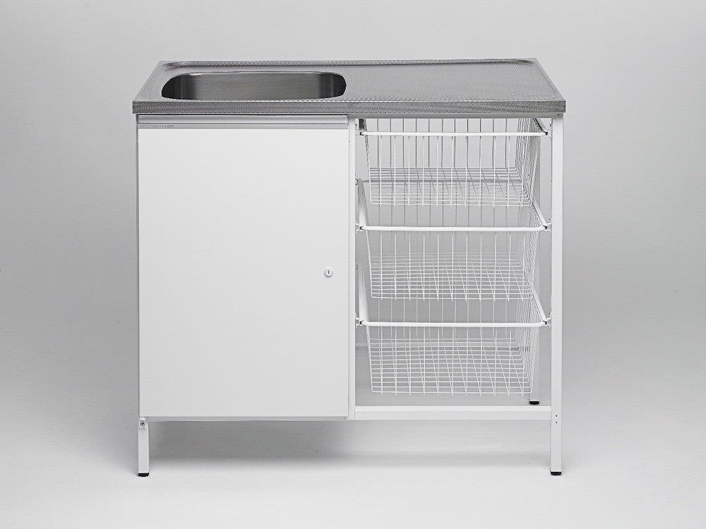 Med dette vaskebord får du fleksibilitet til at tilpasse det yderligere. Du kan vælge at supplere med trådkurve for organiseret opbevaring eller integrere en vaskemaskine direkte i selve vaskebordet. De justerbare fødder sikrer, at vaskebordet står stabilt, selv på ujævne gulve.