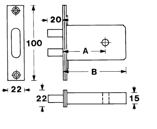 Dobbelt rigellås med 2 hærdede sikkerhedsrigler og 20 mm fremspring. Inkluderer 6-stiftet cylinder og slutblik.