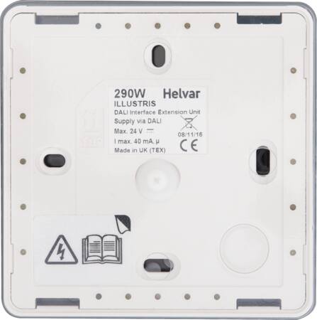 Helvar Illustris Dali interface i hvid. Bluetooth, lavprofil konstruktion, fuld DALI kompatibilitet, out-of-box operation og mobil app forbindelse.