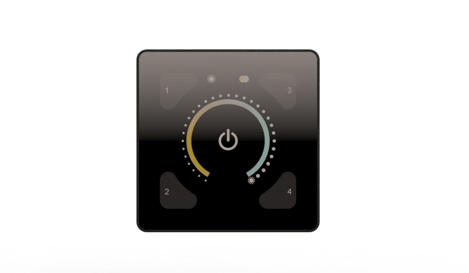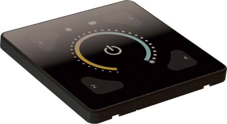Helvar Illustris Panel i sort plast til farvetemperaturstyring. Clip-on design, scene- og intensitetskontrol, out-of-box funktion. Interface til trykpanel påkrævet.