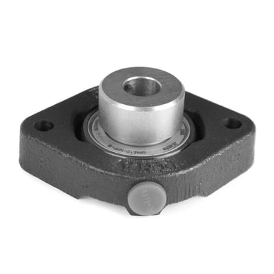 Komplet to-huls flangelejeenhed fra INA, bestående af kugleleje og hus. Lejet er tætnet og med excentrisk låsering.