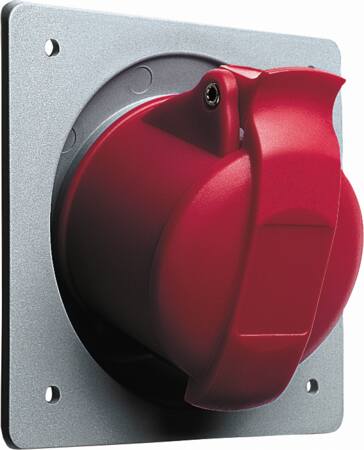 CEE stikdåse H6, 400V, 32A, 5 polet, indbygning, skrå med klaplåg, IP44.