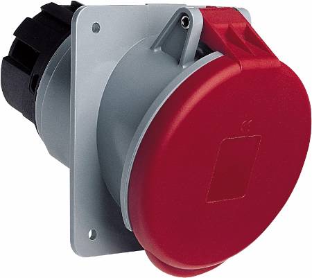 CEE stikdåse H6, 400V, 63A, 5 polet, indbygning, skrå med klaplåg, IP44.