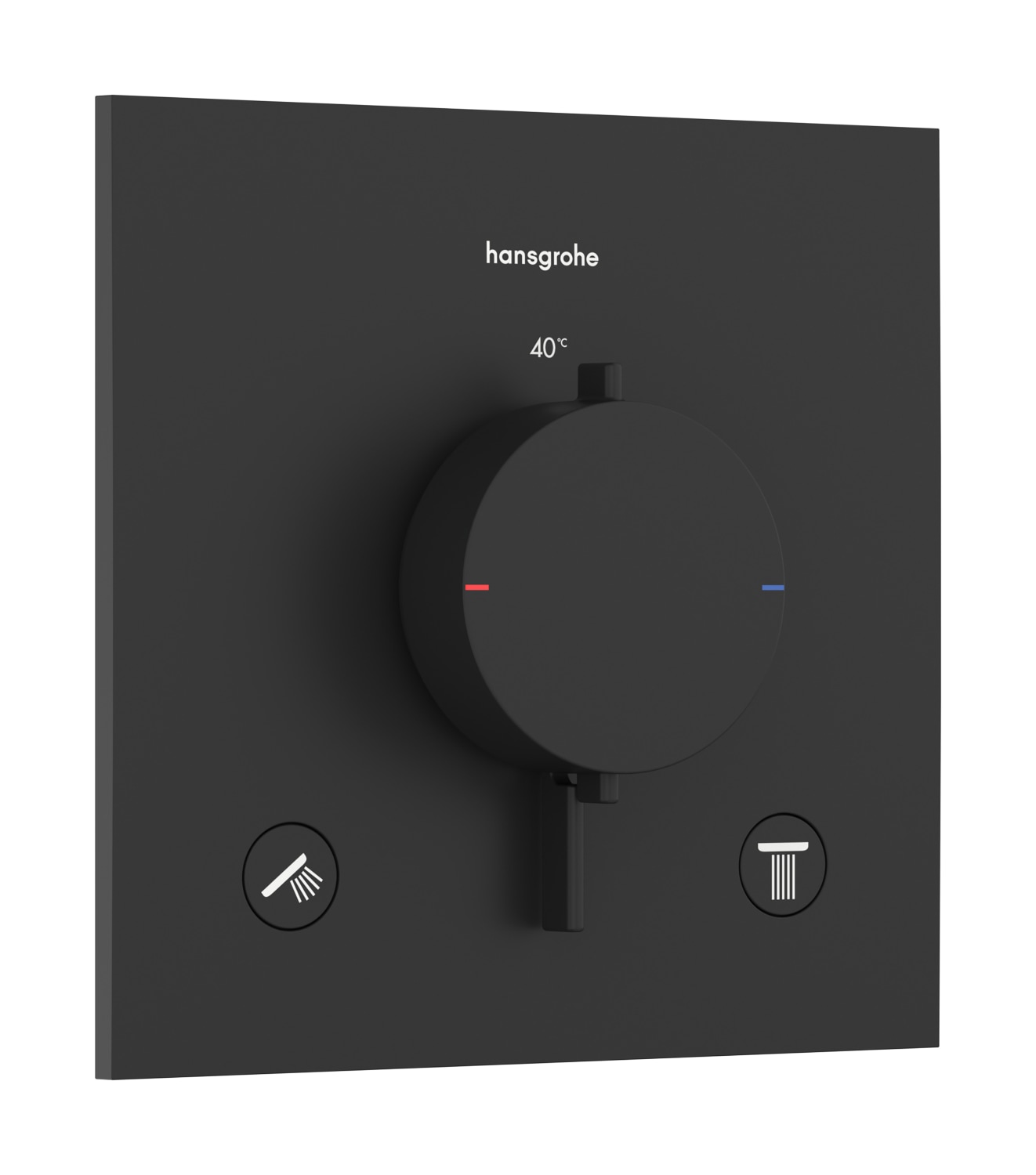 Opgrader dit badeværelse med Hansgrohe Ecostat Comfort E termostatarmaturet, der kombinerer stilfuldt design med intelligent funktionalitet. Dette armatur i mat sort er ideelt til indbygning og tilbyder individuel vandstyring til din bruseroplevelse.