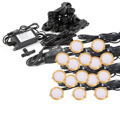 Dette samlede kit indeholder 15 stk. Cosmos indbygningsspots, perfekt til at skabe stemningsfuld belysning udendørs. Med en elegant messingfinish og et varmt hvidt lys på 2900 Kelvin, bidrager disse spots til en hyggelig atmosfære.