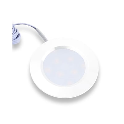 LEDlife Reco68 indbygningsspot i mat hvid. Kompakt design med en diameter på 6,8 cm, 2,5W og 12V, ideel til møbler og skabe.
