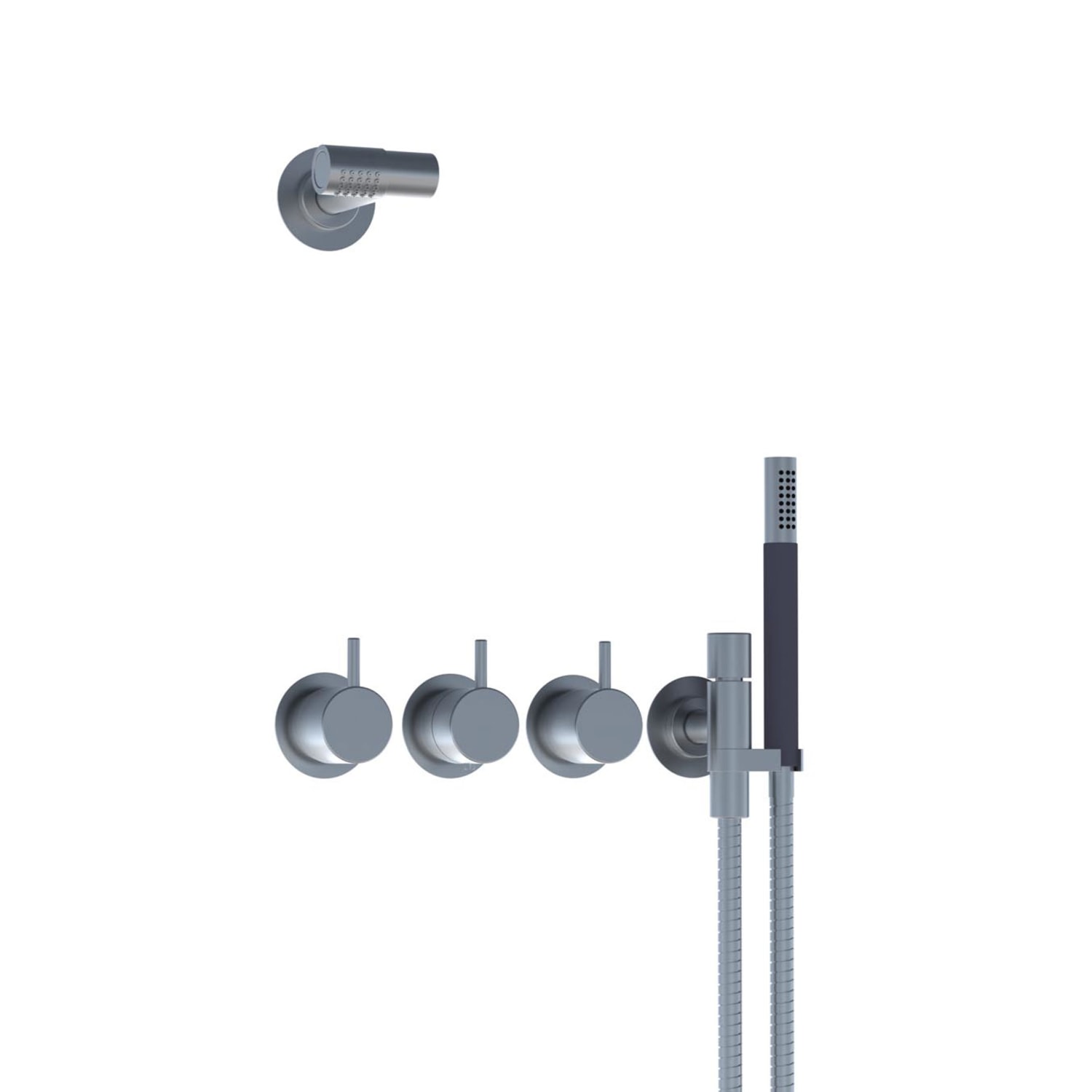 Indbygningstermostat ¾'' med omskifter T2 håndbruser. Fremstillet i messing med en mat sort overflade. Velegnet til indbygning.