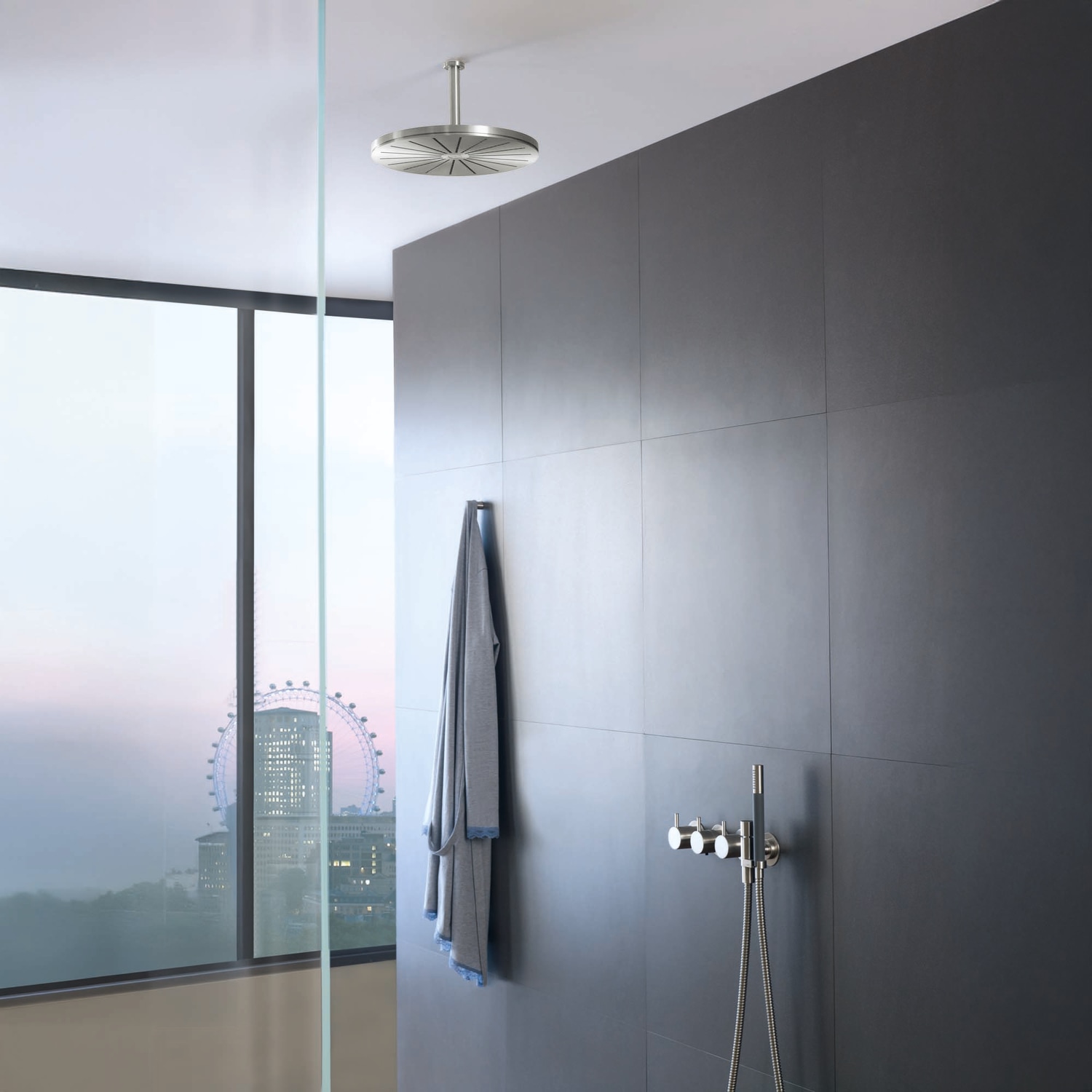 Denne indbygningstermostat er designet til at blive integreret i dit brusearmatur og giver dig fuld kontrol over vandtemperaturen og -flowet. Termostaten er udstyret med en omskifter, der tillader nem overgang mellem forskellige brusefunktioner, herunder tilslutning af en håndbruser.