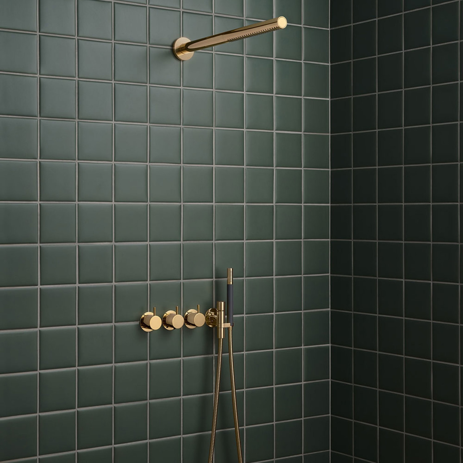 Indbygningstermostat til håndbruser med omskifter. Fremstillet i mat sort messing.