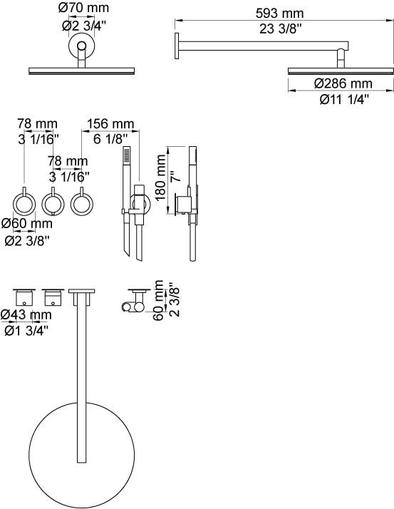 - Håndbruser: Rund form med et flow på 9 liter/minut ved 3 bar. Inkluderer en 1500 mm bruseslange.