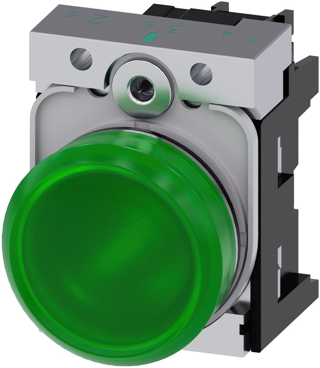 Denne signallampe fra Siemens SIRIUS ACT-serien er designet til at signalere koblingstilstande eller fejl i systemer. Med en diameter på 22 mm, et robust metalhus og en skinnende grøn, glat linse, kombinerer den holdbarhed med et professionelt udseende.