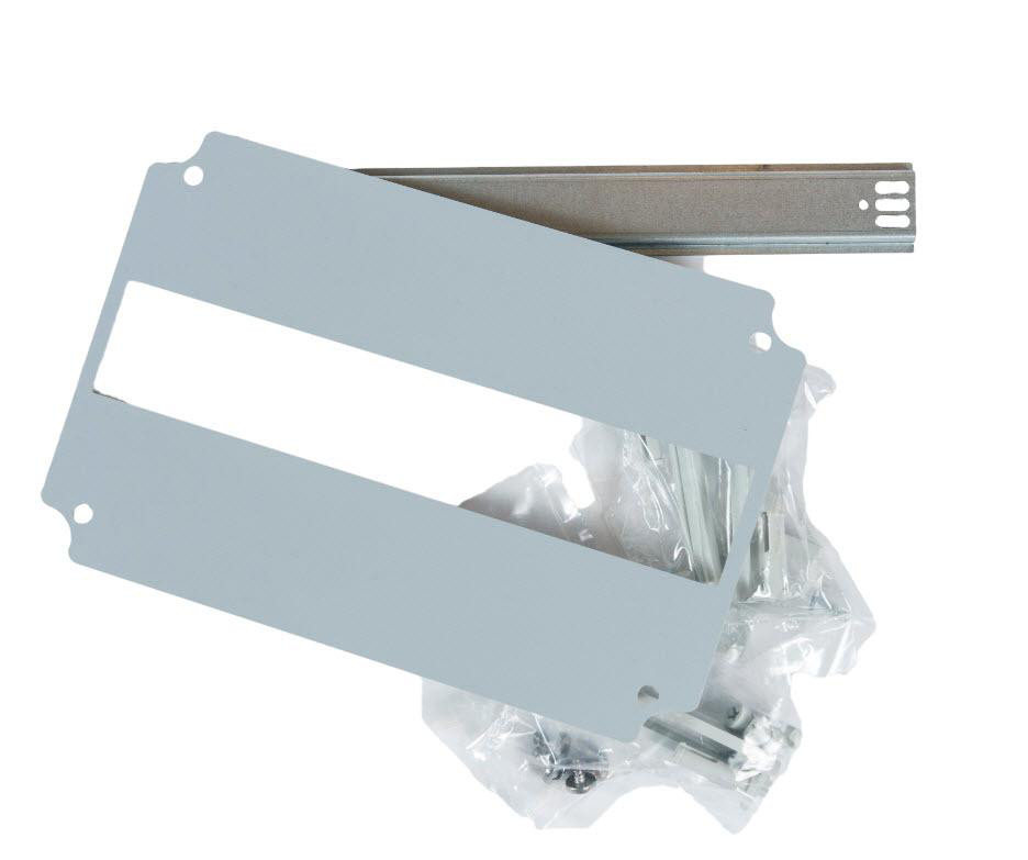 - Leveres komplet med afstandsstykker, DIN-skinner og dækplade