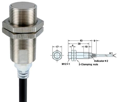 Induktiv aftaster M12 til høje temperaturer (120 °C) i rustfrit stål. Med 3 mm rækkevidde, DC PNP, NO, fabriksfortrådet og 2 meter kabel.