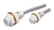 Induktiv aftaster med PTFE krop, kort model, M30, skærmet, 10mm, DC, PNP-NO, og 2 m kabel.