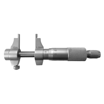 Indvendig 2-punkt mikrometer med måleområde fra 5-30 mm og måleflade i hårdmetal. Opfylder DIN 863 standard. Leveres med en kontrolring på 5 mm.
