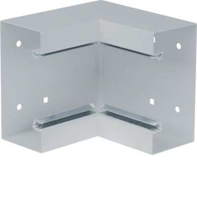 Indvendigt hjørne i stål, der er designet til installationskanal type BRS65130VZ fra Hager. Hjørnet er en fast enhed, der monteres direkte på væggen.