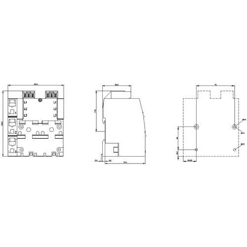 3-faset samleskinne med venstre fremføring til 2 afbrydere (S00 og S0). SIRIUS modulsystem.