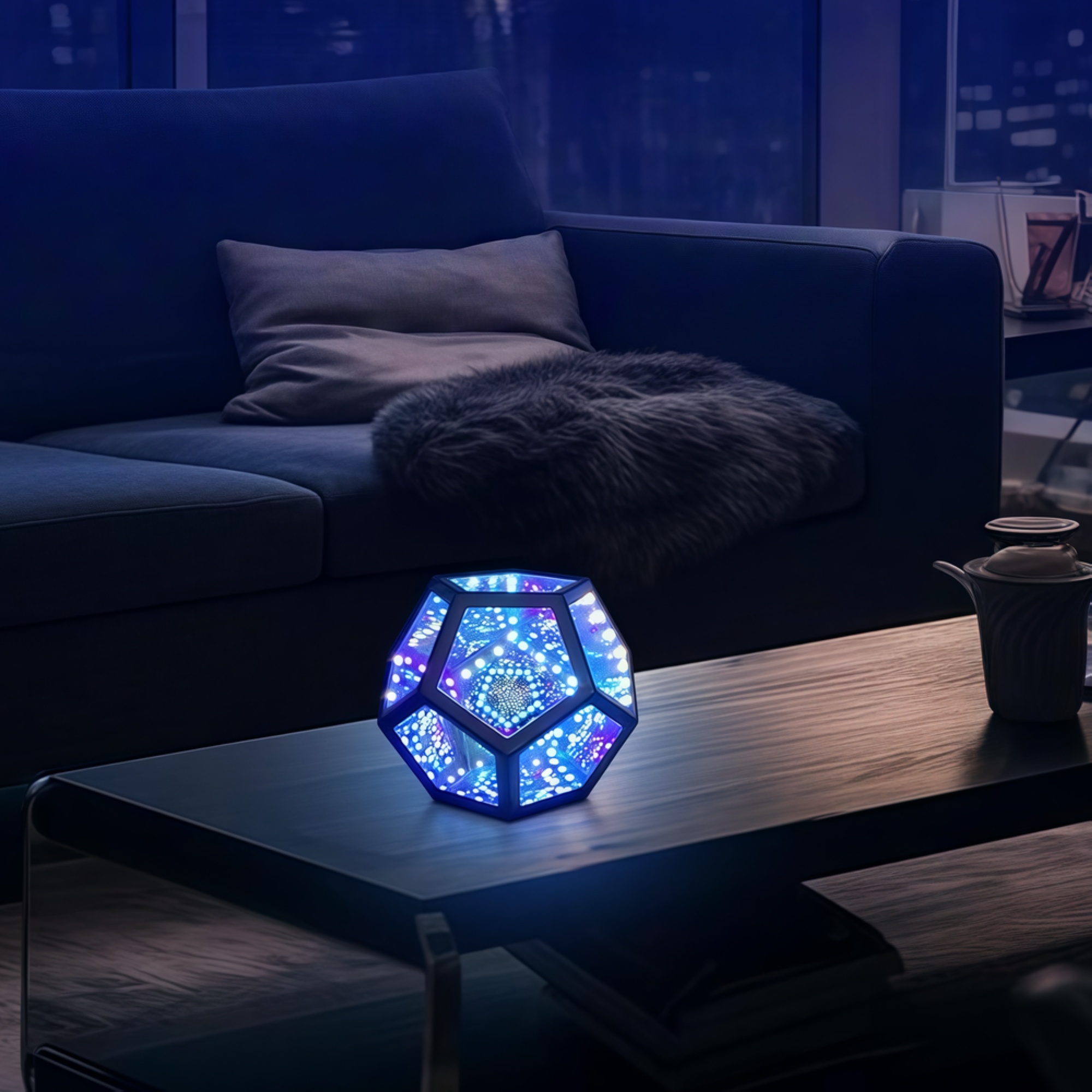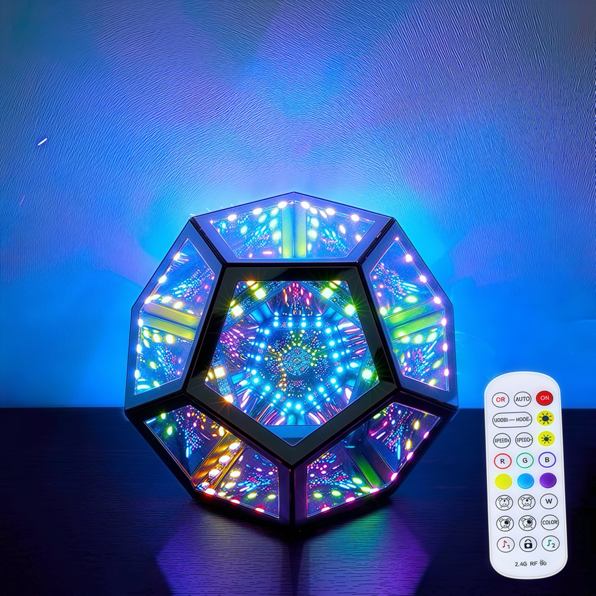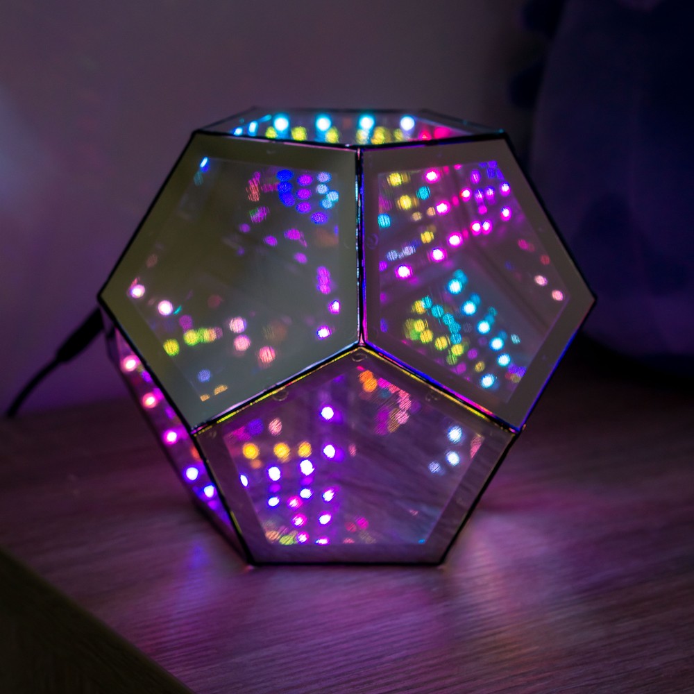 Skab en unik atmosfære med dette infinity mirror light. RGBW-farver, 9W, USB-tilslutning og fjernbetjening.