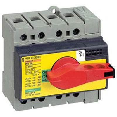 Compact INS80 lastadskiller, 4 polet, 80A, til AC og DC netværk. Ideel til kontrol og afbrydelse af elektriske kredsløb i industri- og kontorbygninger.