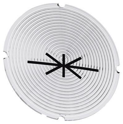 Denne inskription plade er designet til montering på trykknapper. Den er rund og udført i hvid med en sort 'brake' font.