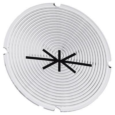 Inskription plade til trykknap, rund, hvid med sort font og 'brake release' symbol.