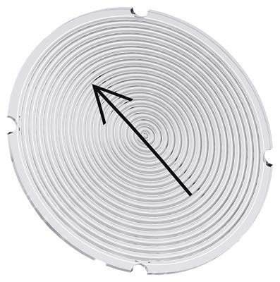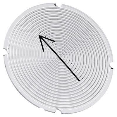 Inskription plade til trykknap, rund, hvid med sort font og grafisk symbol: Rapid traverse.