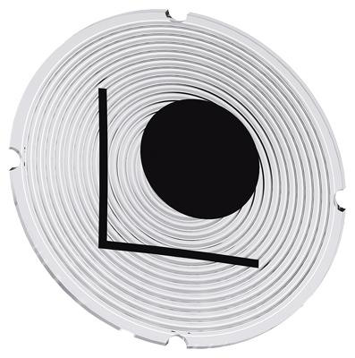 Inskription plade til trykknap, rund, hvid med sort font, med 'set up' symbol.