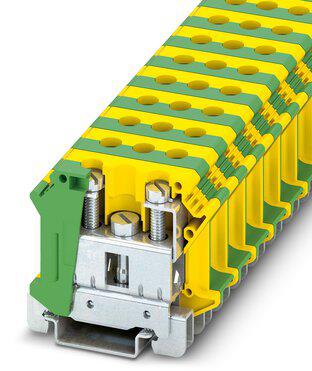 Installationsjordklemme med skruetilslutning. Tværsnit: 0,75 mm2 - 35 mm2. Farve: Grøn/gul. Til montering på NS 35/7,5 og NS 35/15.