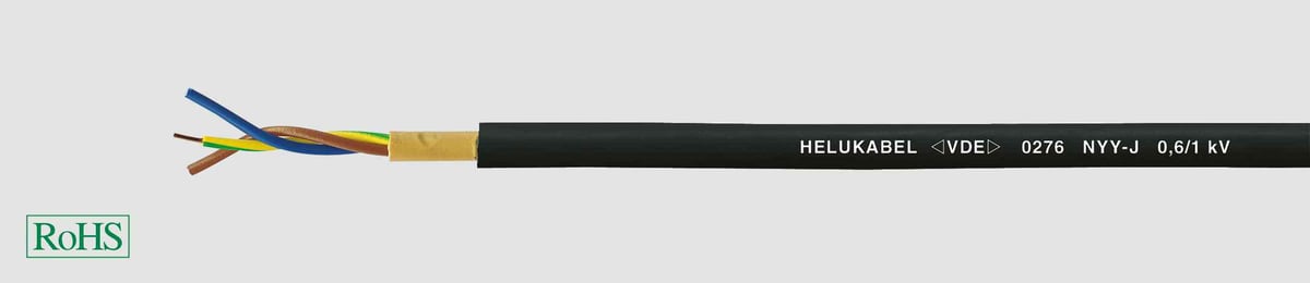 PVC installationskabel 0,6/1 kV med sort kappe. CE godkendt. Kan installeres udendørs, i jorden, under vand, i beton eller i kabelkanaler.
