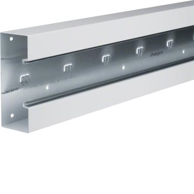 Stål installationskanal BRS 65170 fra Hager. Låghøjde 80mm og lakeret i RAL 9016. Tilbehør som samlinger, endestykker, hjørner og lyddæmpning findes.