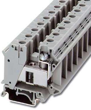 Installationsklemme med skruetilslutning. Tværsnit: 0,75 mm² - 35 mm². Bredde: 15,2 mm. Farve: grå. Til montering på NS 35/7,5, NS 35/15, NS 32.