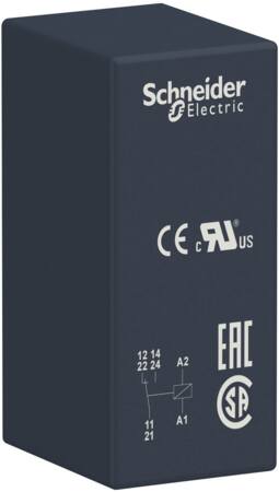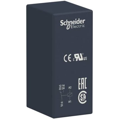 Plug-in relæ fra Schneider Electric med 1C/O kontakt, 16A mærkstrøm og 24VDC spænding. Ideel til en bred vifte af applikationer.