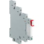 Interfacerelæ med sokkel, 230V AC/DC, 1CO, AC-12 6A ved 230V AC / AC-15 1,5 A ved 230V AC, 6,2mm bred, skruetilslutning.