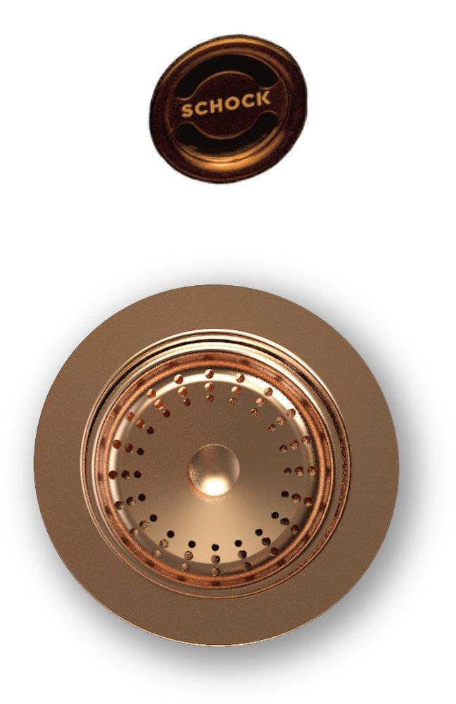 Kobberfarvet afløbsrist, overløbsrist og strainer, der passer til afløbssæt til Granitevask.