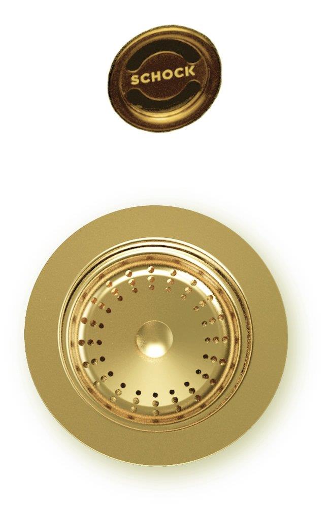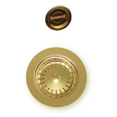 Messingfarvet afløbsrist, overløbsrist og strainer til granitvask.