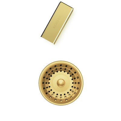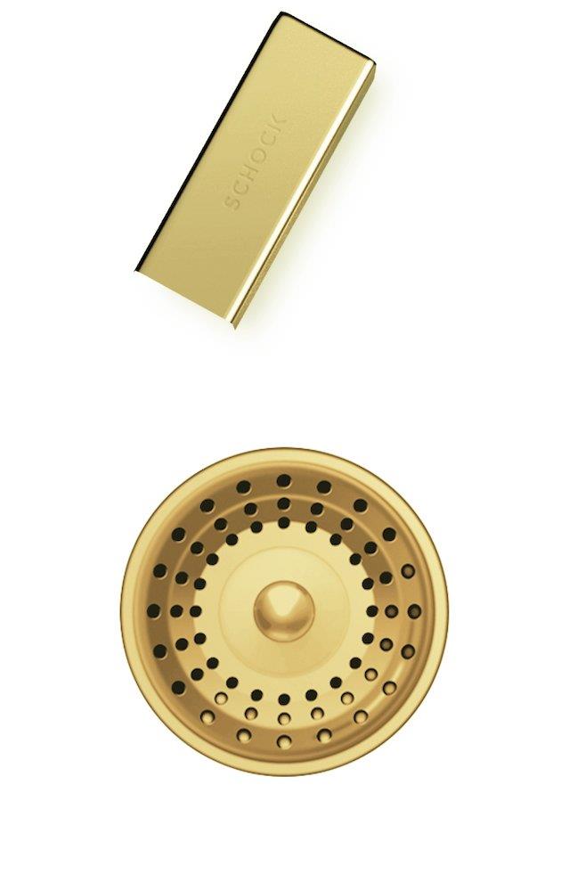 Komplet sæt af messingfarvet afløbsrist, overløbsrist og strainer, designet til Granitvaske.