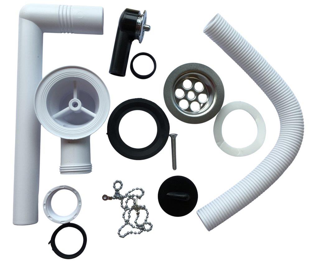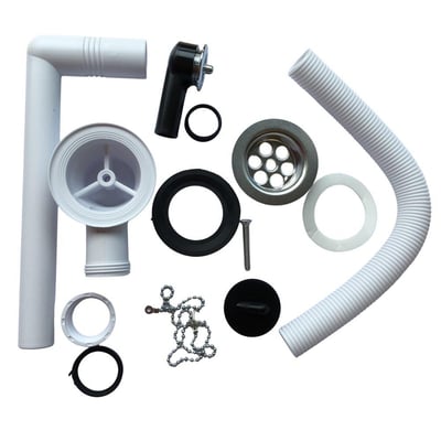 Komplet bundventil på 1 1/4" med overløb og prop, designet til vaskekar fra Intra Juvel.