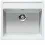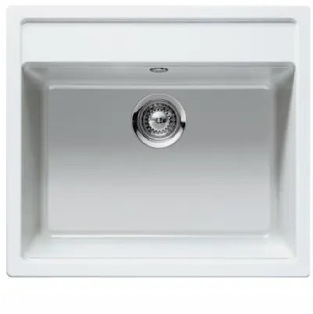 Køkkenvask i hvid Cristalite granit med plads til armatur. Designet til nedfældning og underlimning. Leveres med løft-op-ventil.