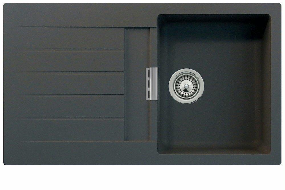 Køkkenvask til nedfældning i Cristalite granitmateriale med vask og afløbsbakke. Leveres i farverne Onxy (sort) og Alpina (hvid) med strainer og vandlås.