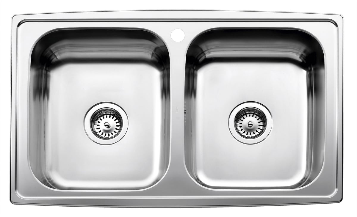 Vasken leveres med strainer i begge kummer samt overløb og vandlås, hvilket gør installationen nem og fuldendt.