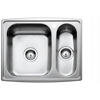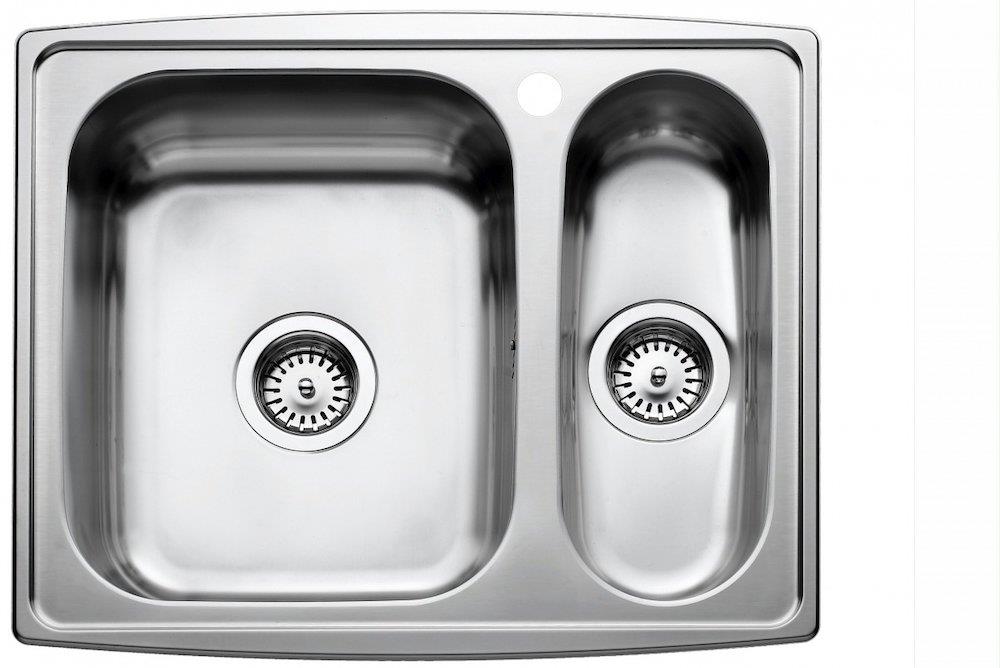 Intra Juvel Horizon HZ615SH køkkenvask til plan- eller underlimning. Fremstillet i poleret rustfrit stål, med vask og kumme, og vasken placeret i venstre side.