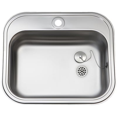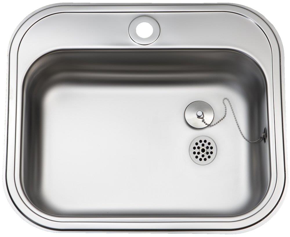 Juvel Barents køkkenvask i mat rustfrit stål til nedfældning. Vasken måler 480 x 340 mm og leveres med hanehul, prop og overløb.